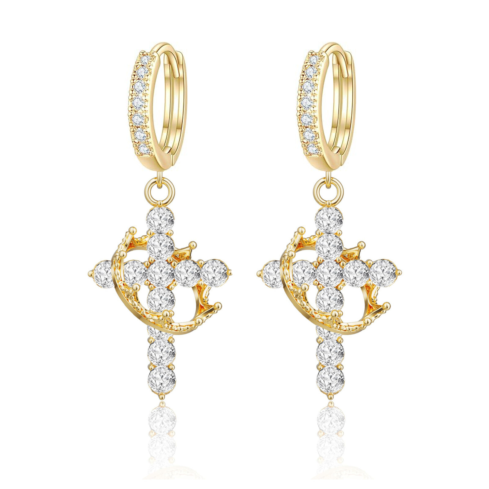 Rotating Crown Cross Earrings Set with Zircon